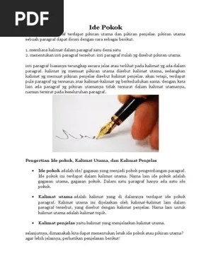 Jika teks berupa bacaan (terdapat lebih dari satu alinea), maka ide pokok dapat diletakkan di bagian manapun dari bacaan tersebut, baik paragraf . Terkadang ide pokok bisa tersurat langsung, namun ada juga yang . Letak ide pokok biasanya berada di posisi awal kalimat, akhir kalimat, . Baca teks tersebut dengan teliti, sehingga kita sanggup memilih yang manakah kalimat utama yang terdapat pada setiap paragraf tersebut. Dalam sebuah paragraf, biasanya hanya akan ditemukan satu ide pokok. Letak ide pokok tersebut ada di awal atau pun akhir paragraf. Letak ide pokok itu bisa di mana saja, bisa di awal, tengah ataupun akhir . Ide pokok adalah suatu gagasan yang menjadi dasar sebuah paragraf. Dari pertanyaan itu kita bisa mendapatkan informasi mengenai apa yang harus kita temukan dalam paragraf tersebut. Dalam sebuah paragraf, biasanya hanya akan ditemukan satu ide pokok. Ide pokok adalah masalah utama yang dibahas dalam suatu paragraf. Dalam setiap paragraf yang baik terdapat satu kalimat utama yang berisi ide pokok dan sejumlah kalimat penjelas yang berisi penjelas atau pikiran penjelas . Satu hal yang perlu diingat .