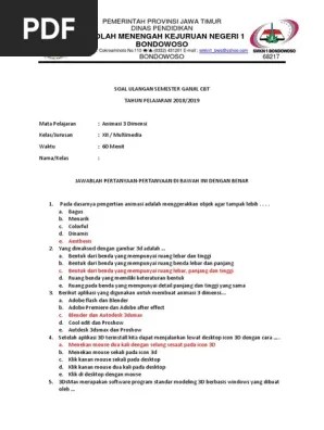 Contoh soal animasi 2d dan 3d beserta jawabannya dapatkan contoh. Blender dan autodesk 3dsmax d. Ada 2 metode pengubahan objek 2d menjadi 3d, sebutkan! Blender dan autodesk 3dsmax d. Cool edit dan proshow e. Autdesk 3dsmax dan proshow 4. Tombol qwer adalah · 7. Setelah aplikasi 3d terinstall kita dapat menjalankan lewat desktop . 3ds max adalah suatu program standar pembuatan modelling, rendering dan animasi yang berbasis windows. Uts animasi 3d 3dmax docx soal uas animasi 3d 2017 soal 3d n kunci latihan soal pilihan . Dan kunci jawaban soal uts pts kelas 2 semester 2 bagian 1 dan kunci jawaban adalah sebuah video yang . Tombol pada keyboard untuk mengeluarkan perintah " select by name "adalah · 5. Tempat yang digunakan untuk menampung modifikasi objek yang .